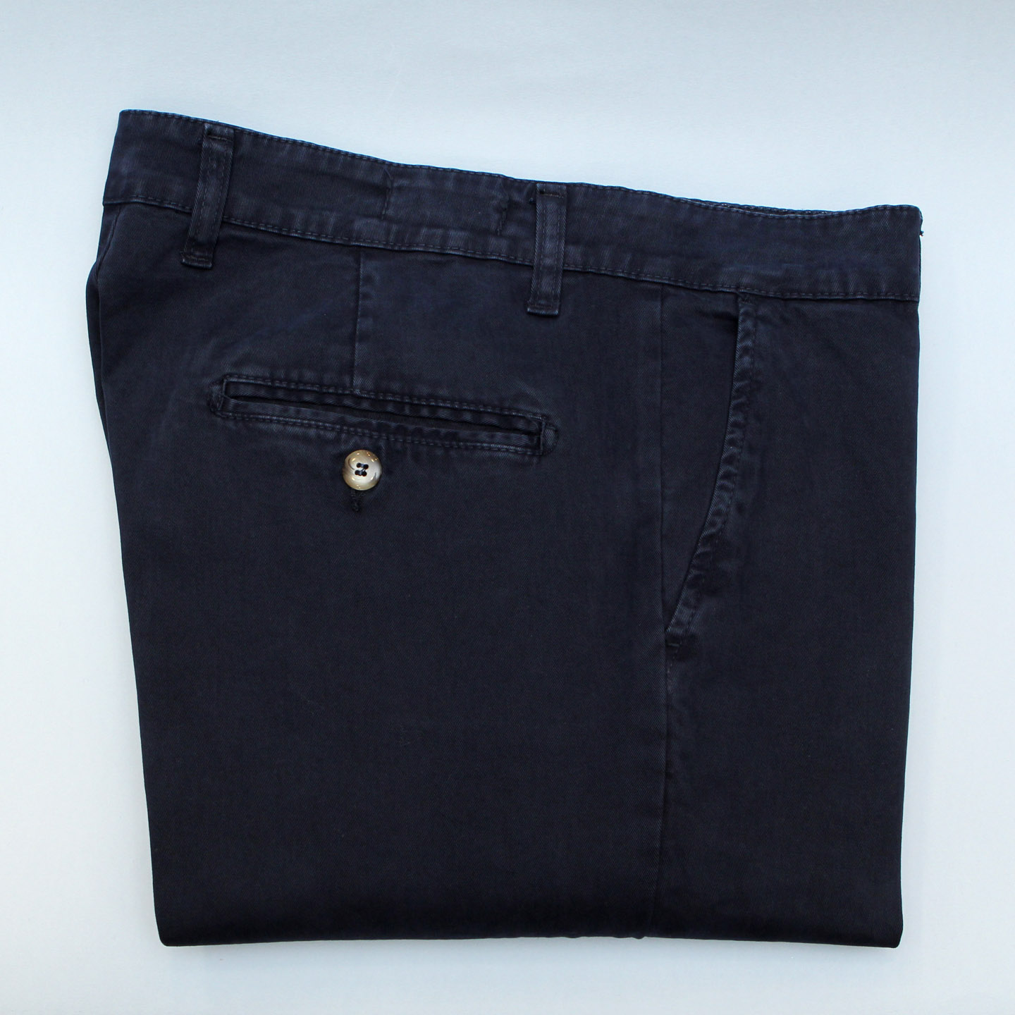Pantaloni uomo tessuto liscio, tasca america, vestibilità regular.