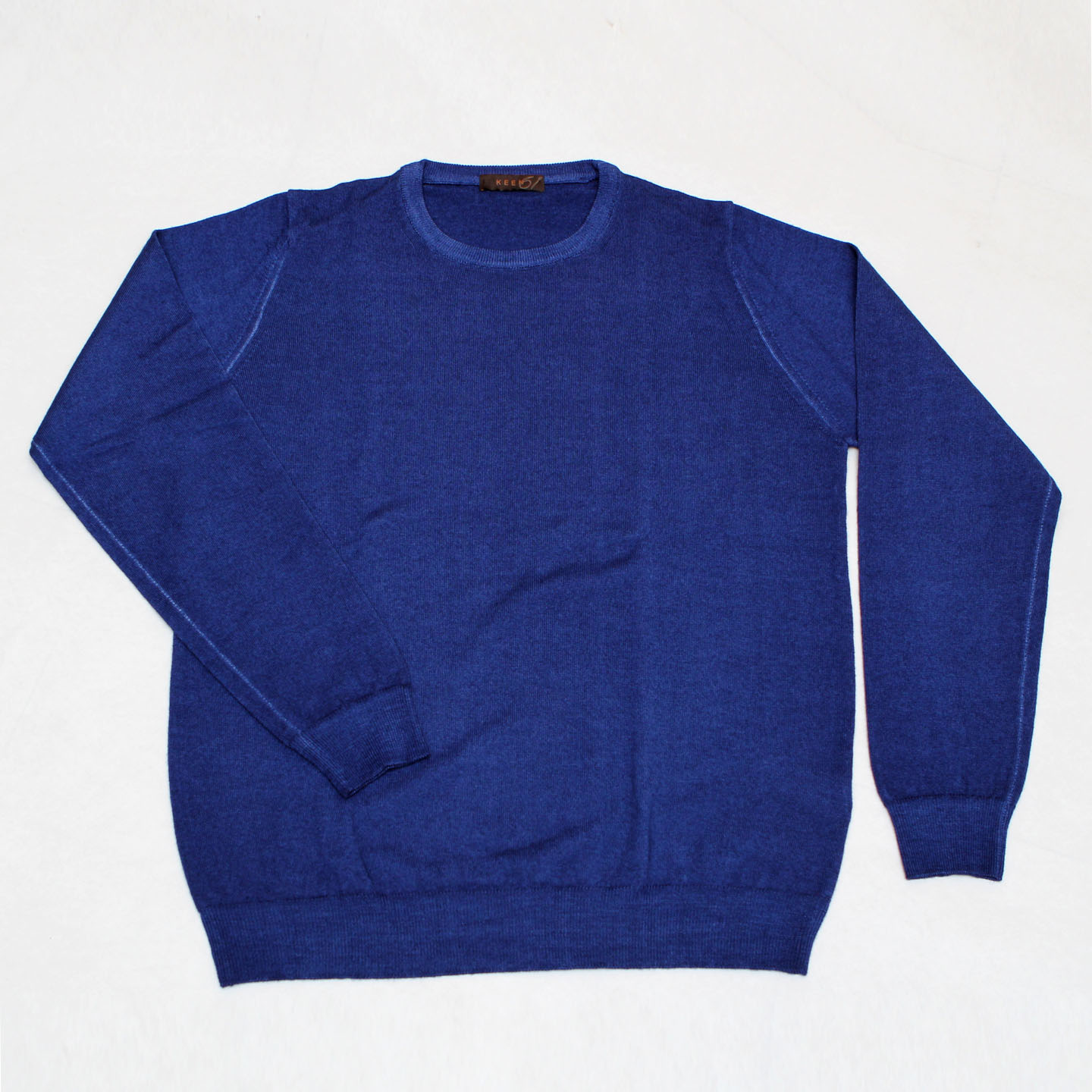 Maglia giro délavè 100% merinos, vestibilità slim.