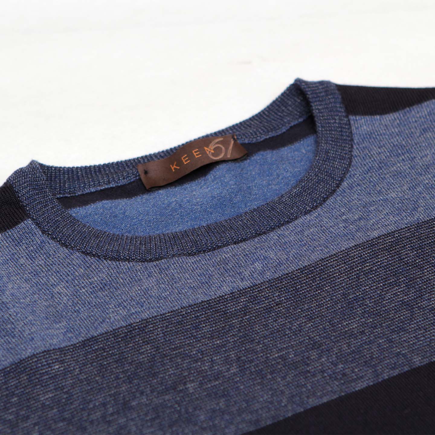 Maglia viscosa a righe scollo a giro.