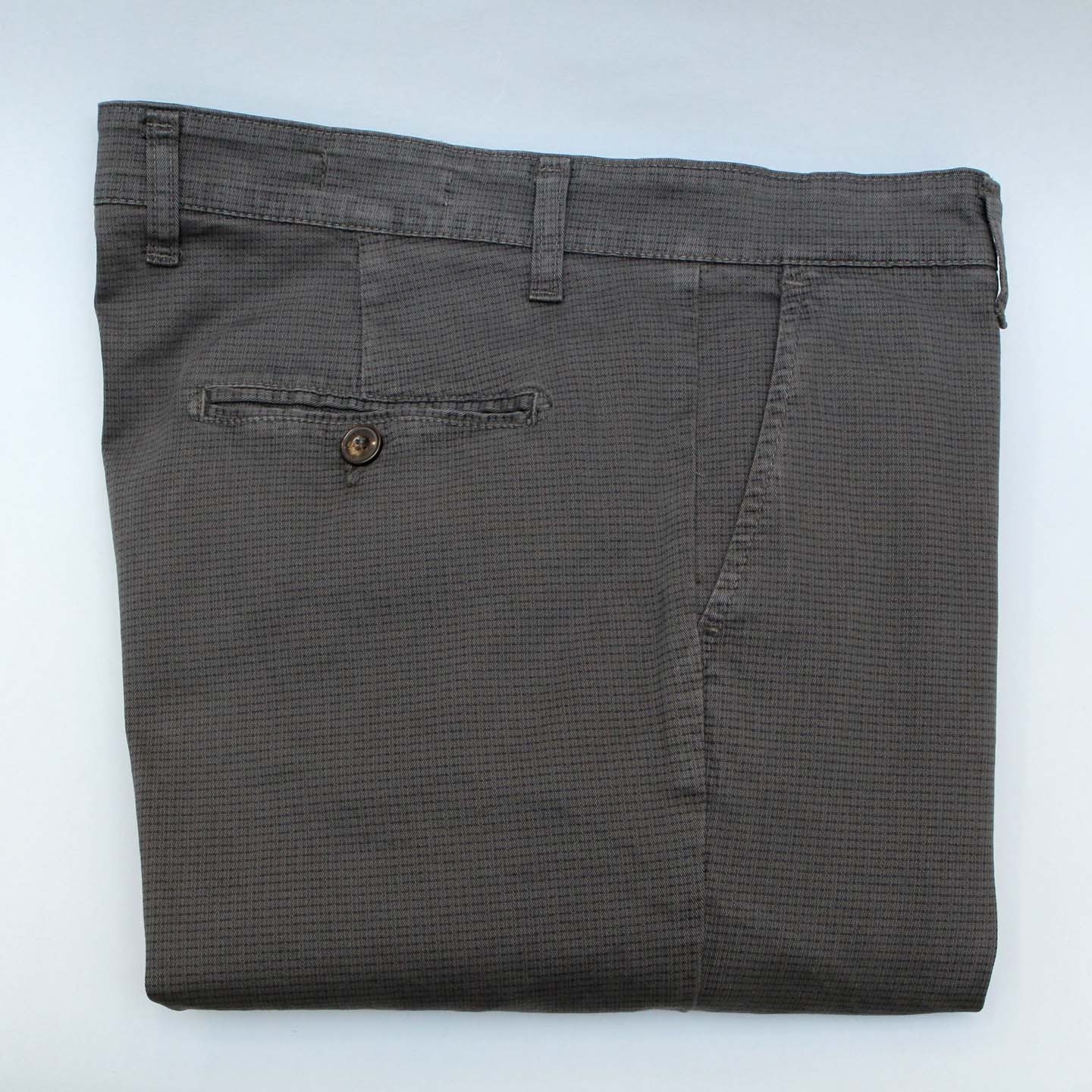 Pantaloni uomo tessuto quadretti piccoli, tasca america, vestibilità regular.