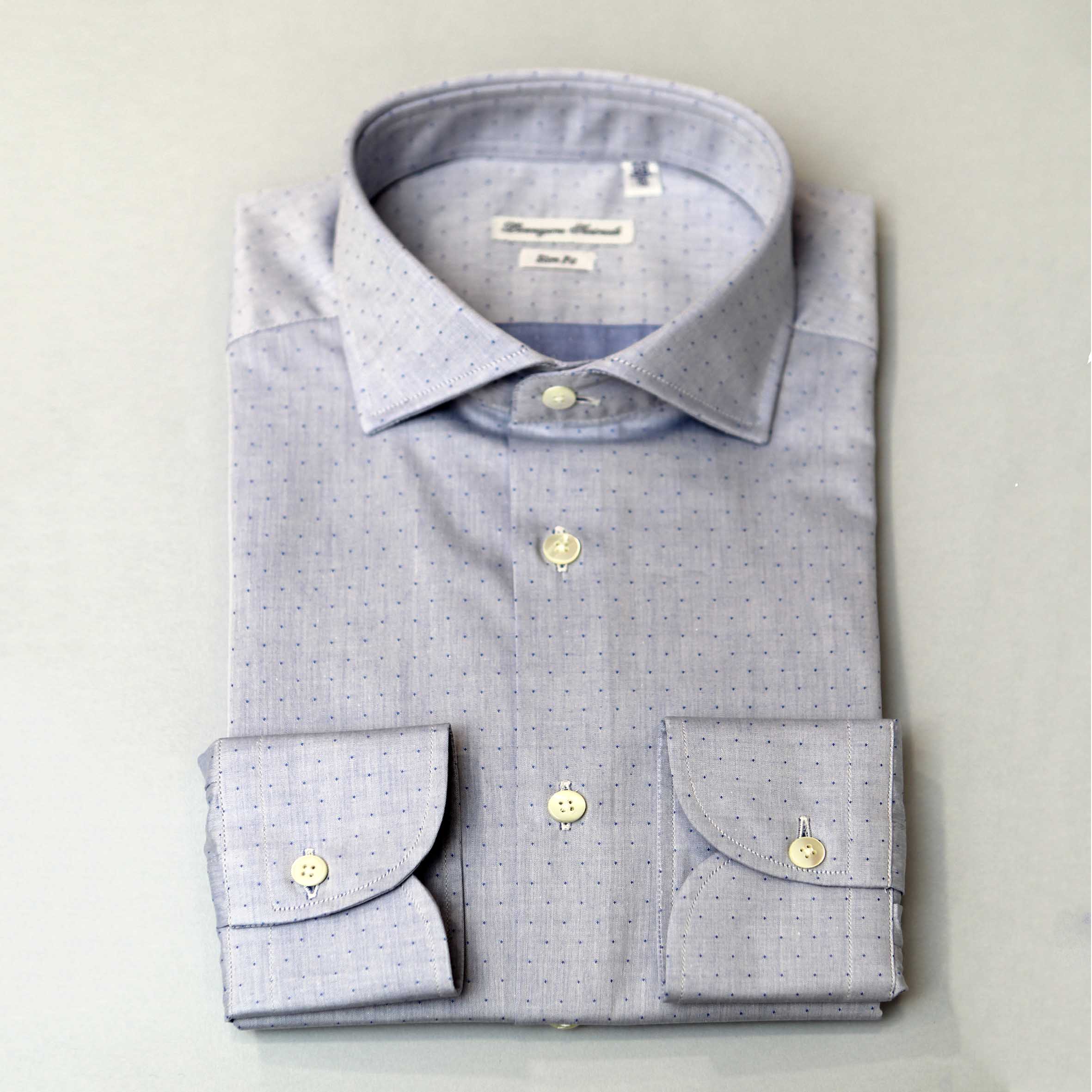 Camicia twill micro fantasia con puntino,100% cotone, vestibilità slim, collo francese.
