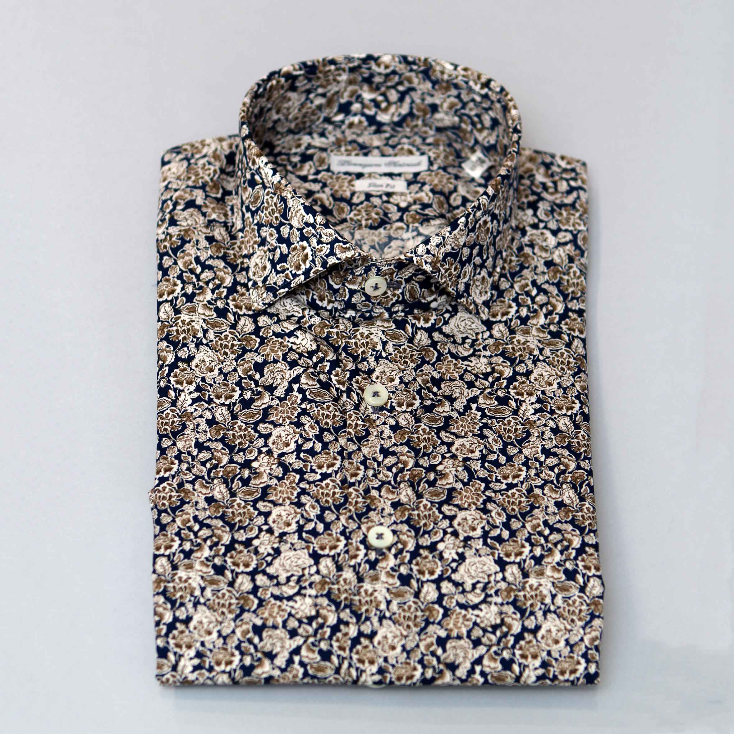Camicia fantasia,100% cotone, vestibilità slim, collo francese.