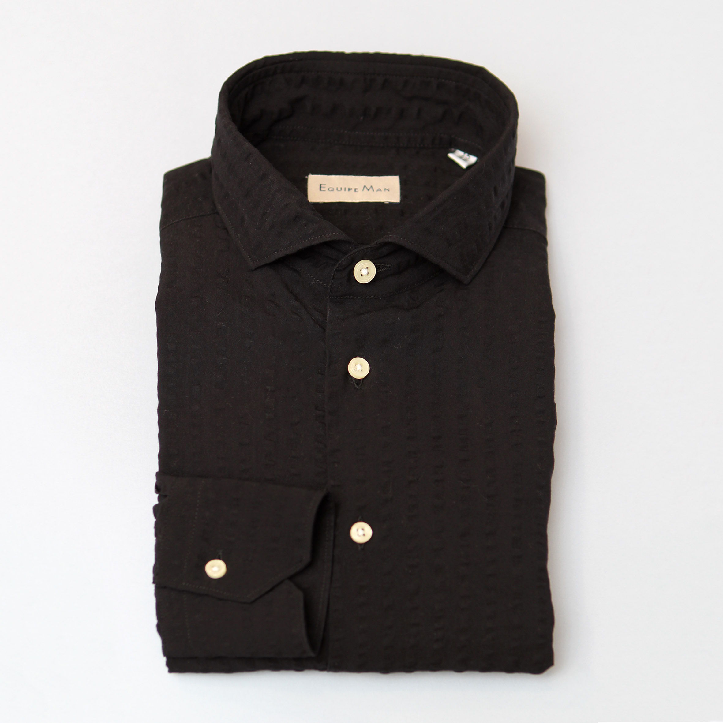 Camicia nero tessuto goffrato,100% cotone, vestibilità slim, collo francese.