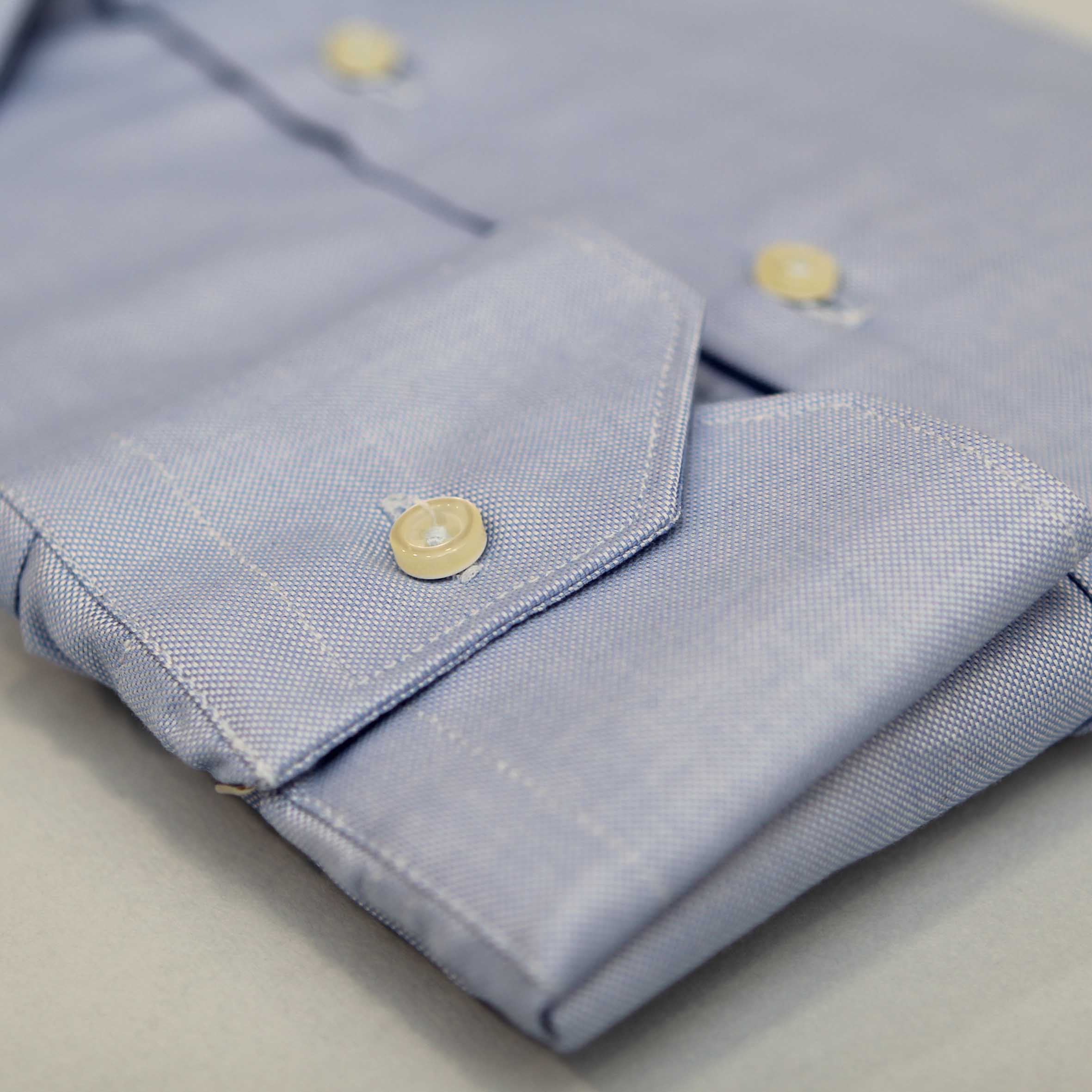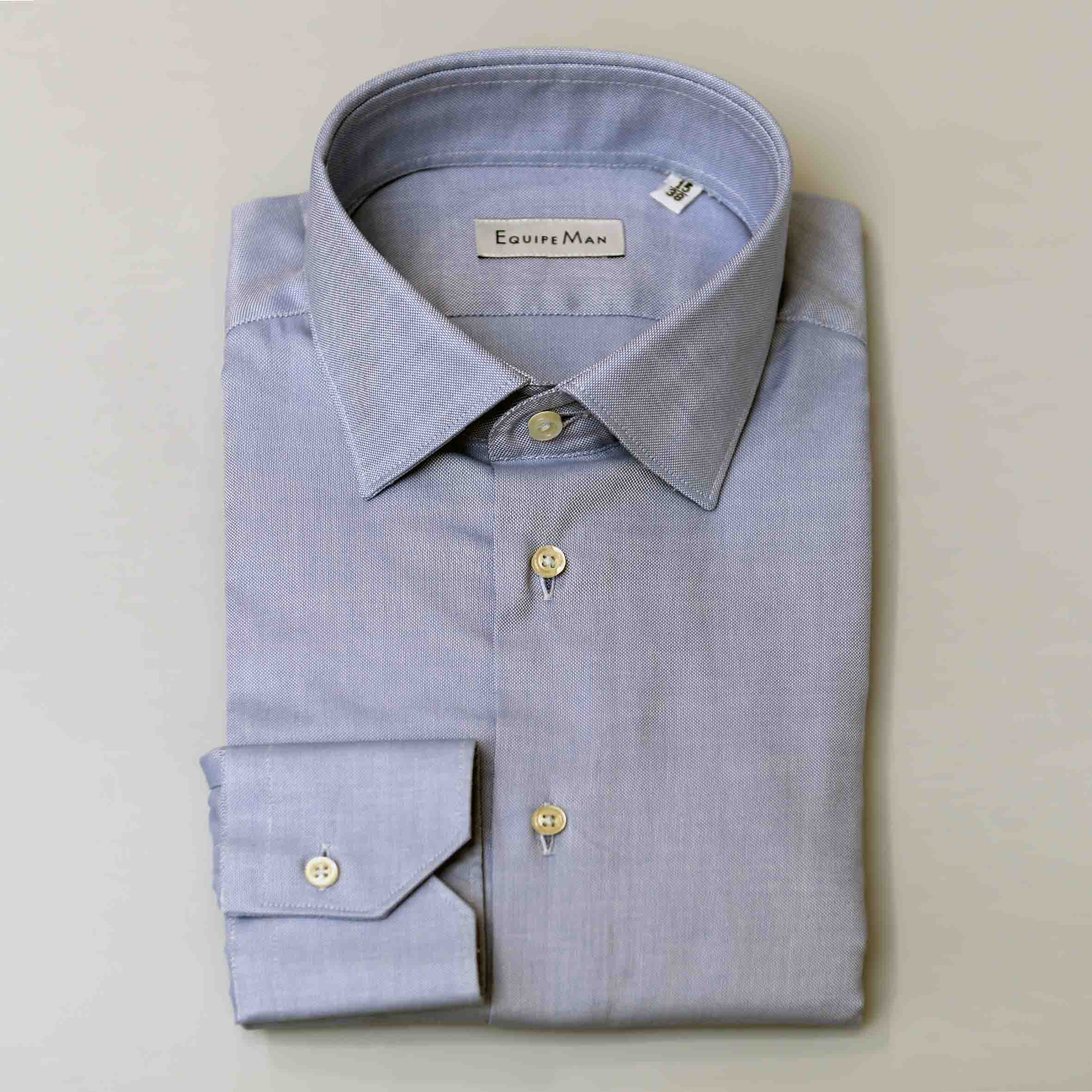 Camicia oxford azzurra,100% cotone, vestibilità comoda con riprese, collo classico.