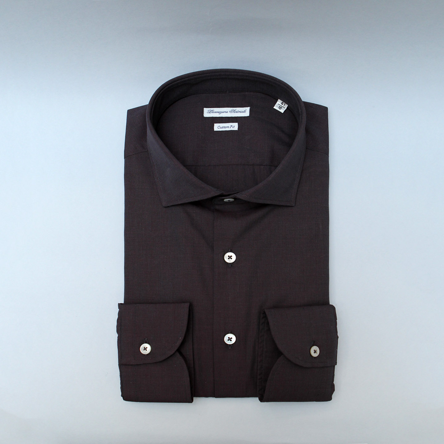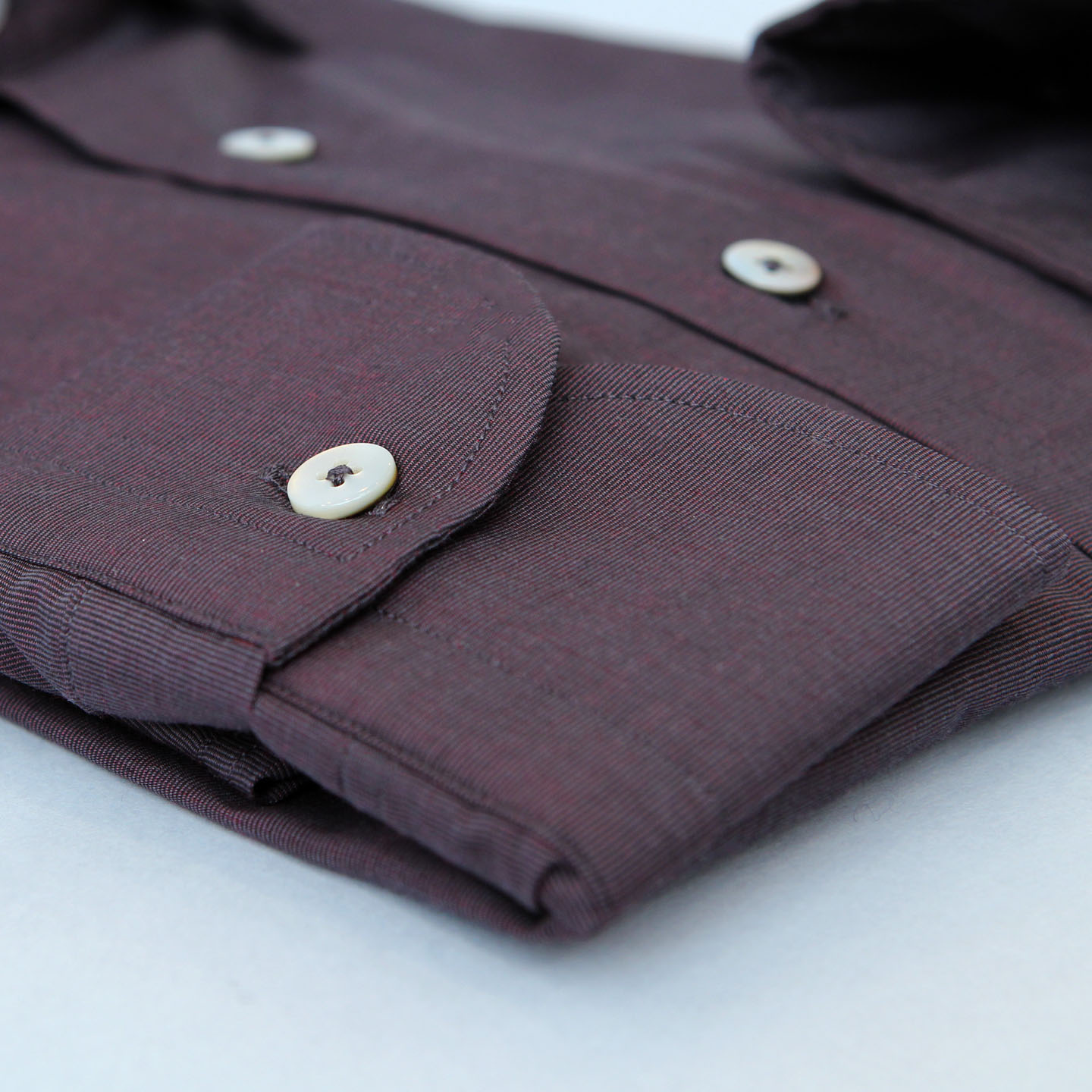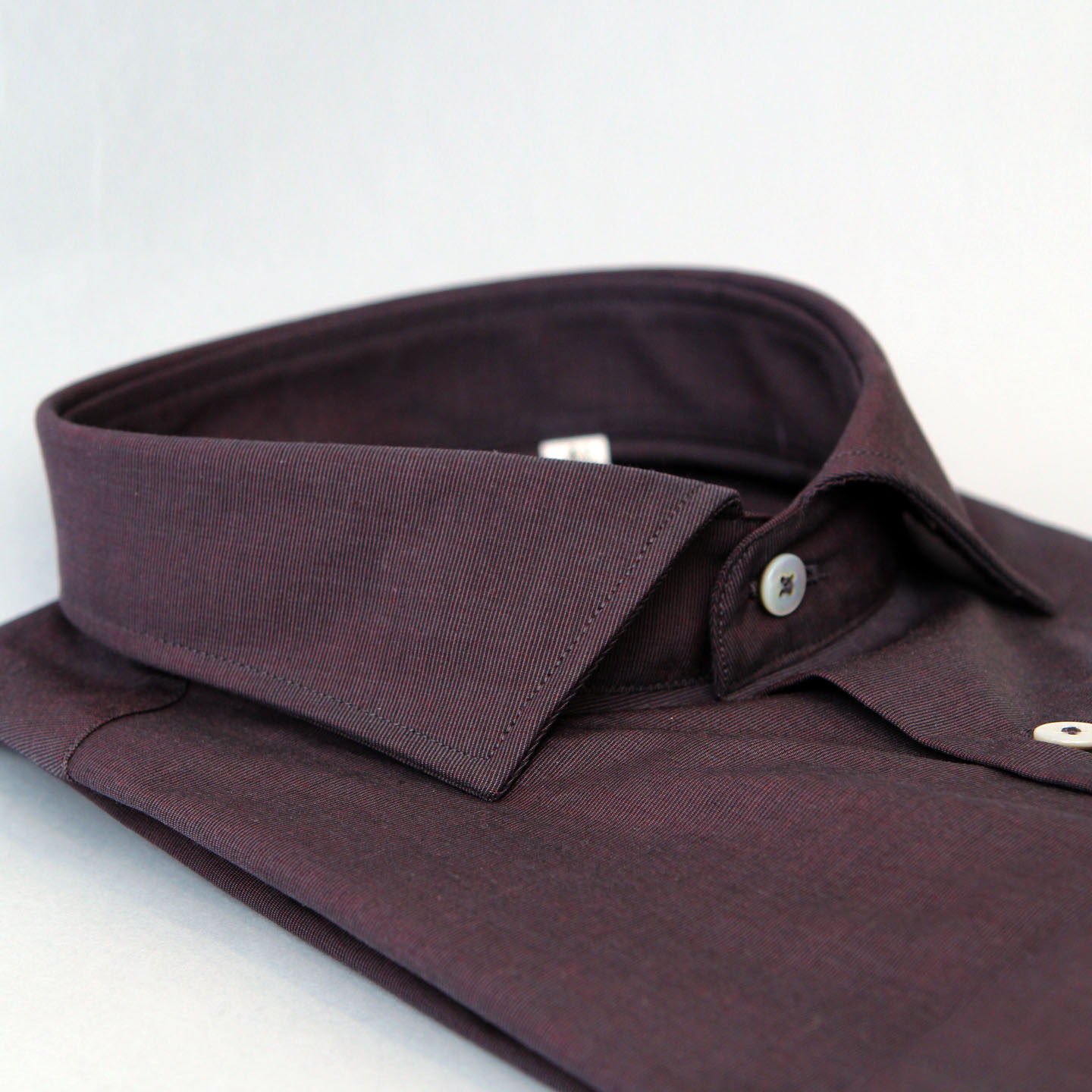 Camicia fil a fil prugna, 100% cotone, vestibilità custom, collo francese.