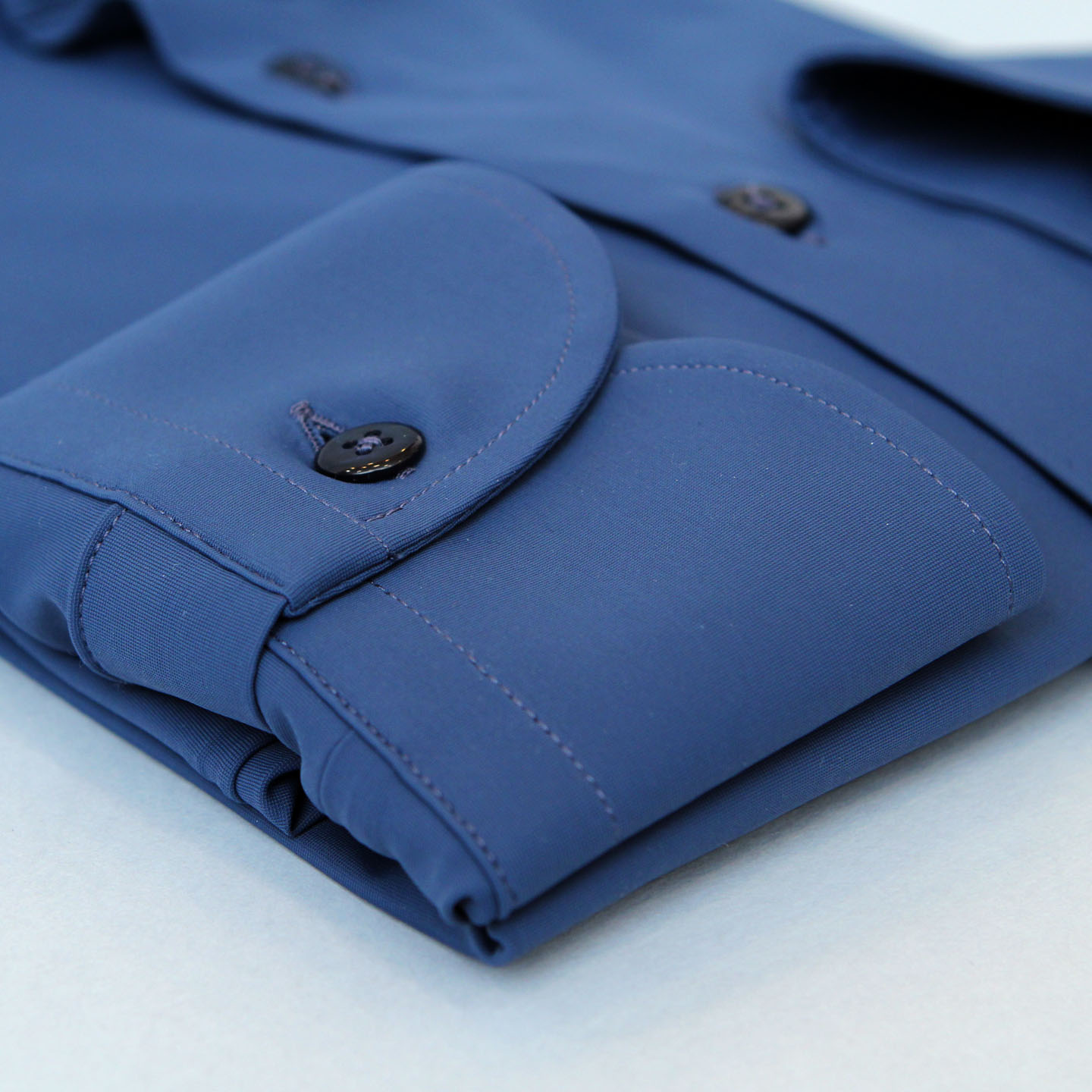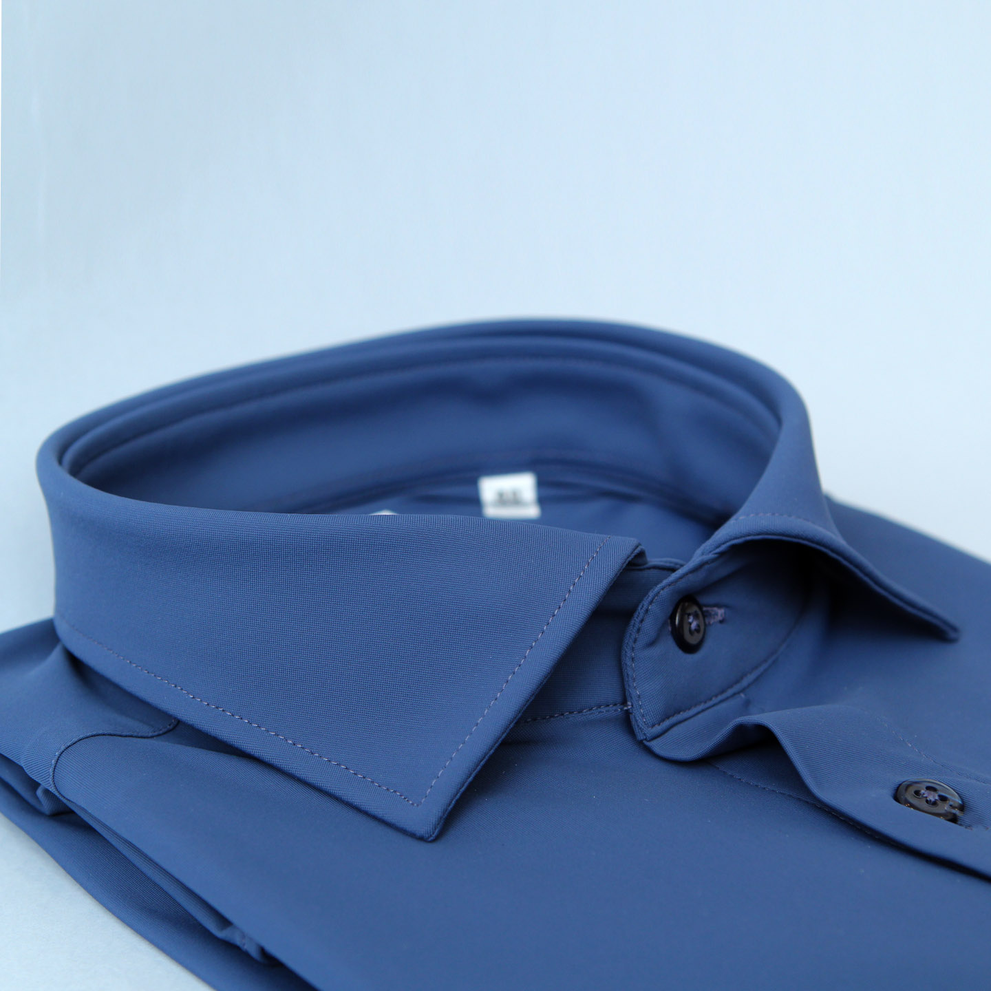 Camicia fitness avio, cotone elasticizzato, vestibilità custom, collo francese.