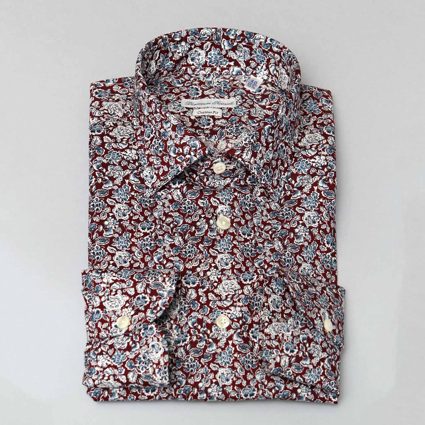 Camicia fantasia stampata,100% cotone, vestibilità custom, collo francese.