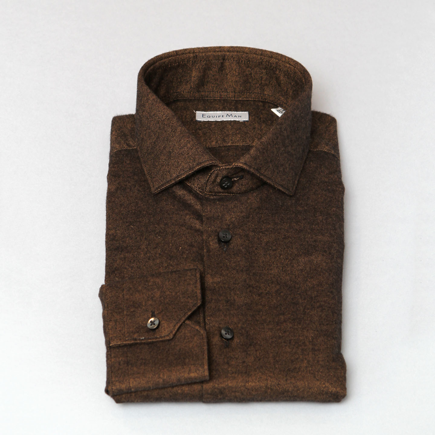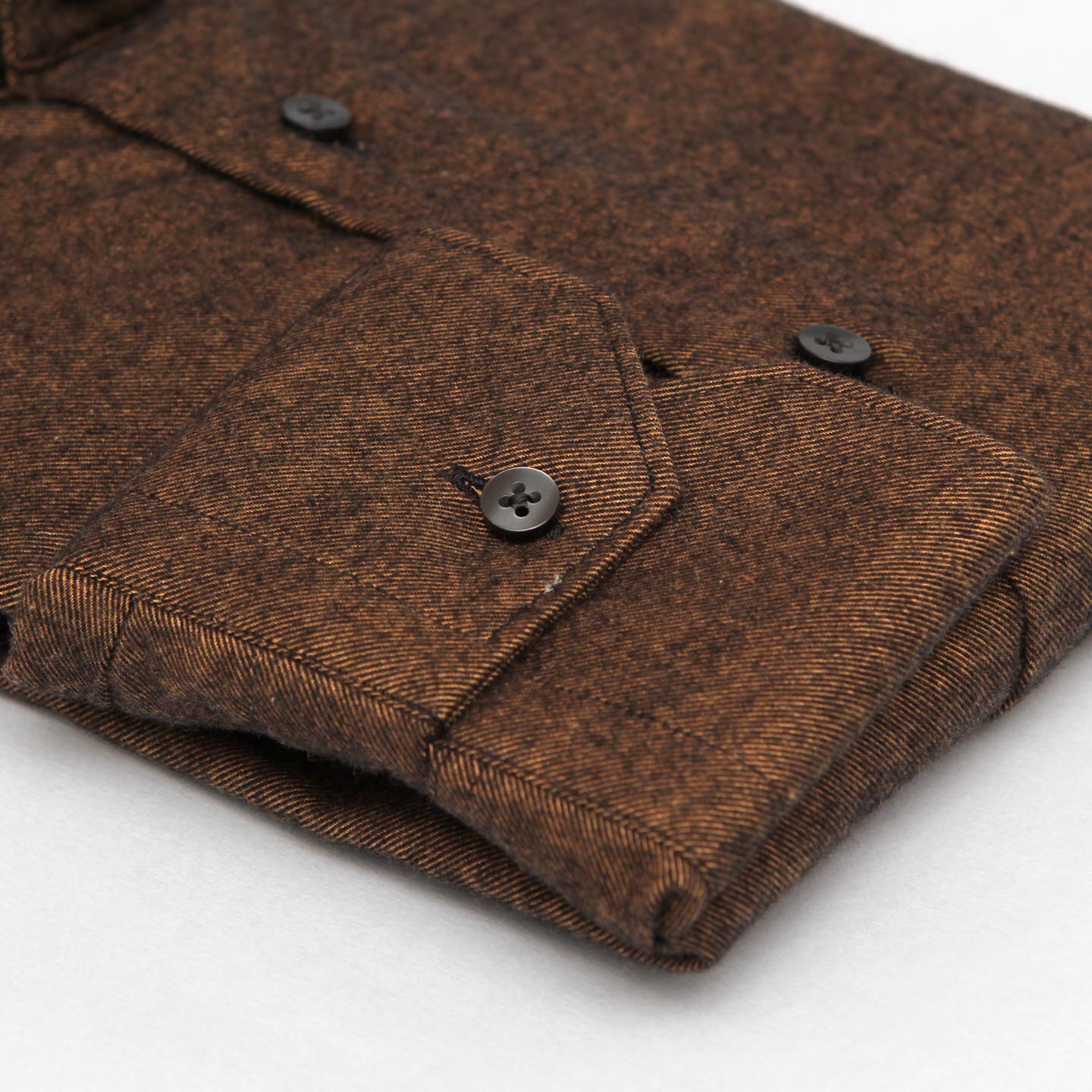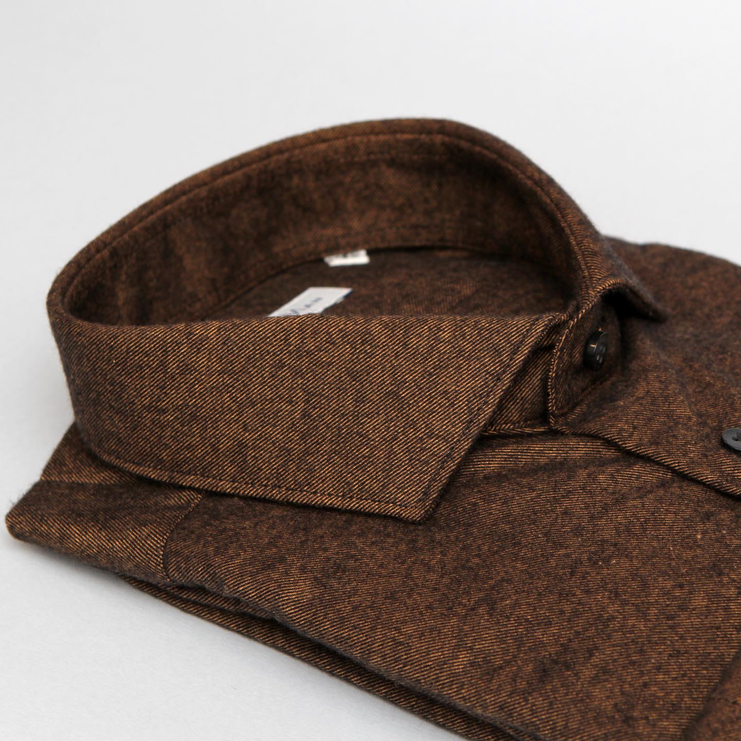 Camicia flanella bronzo, 100% cotone, vestibilità slim, collo francese.