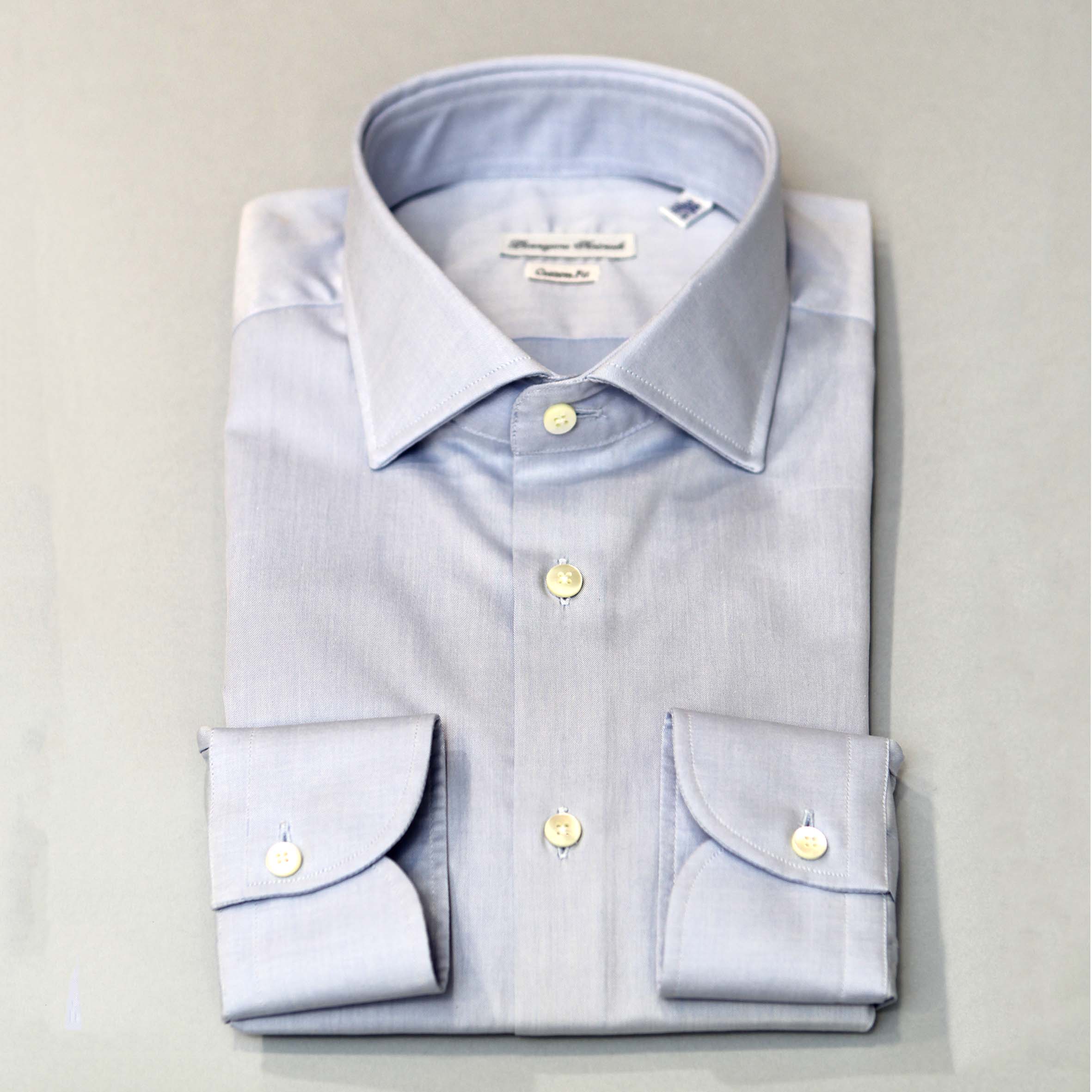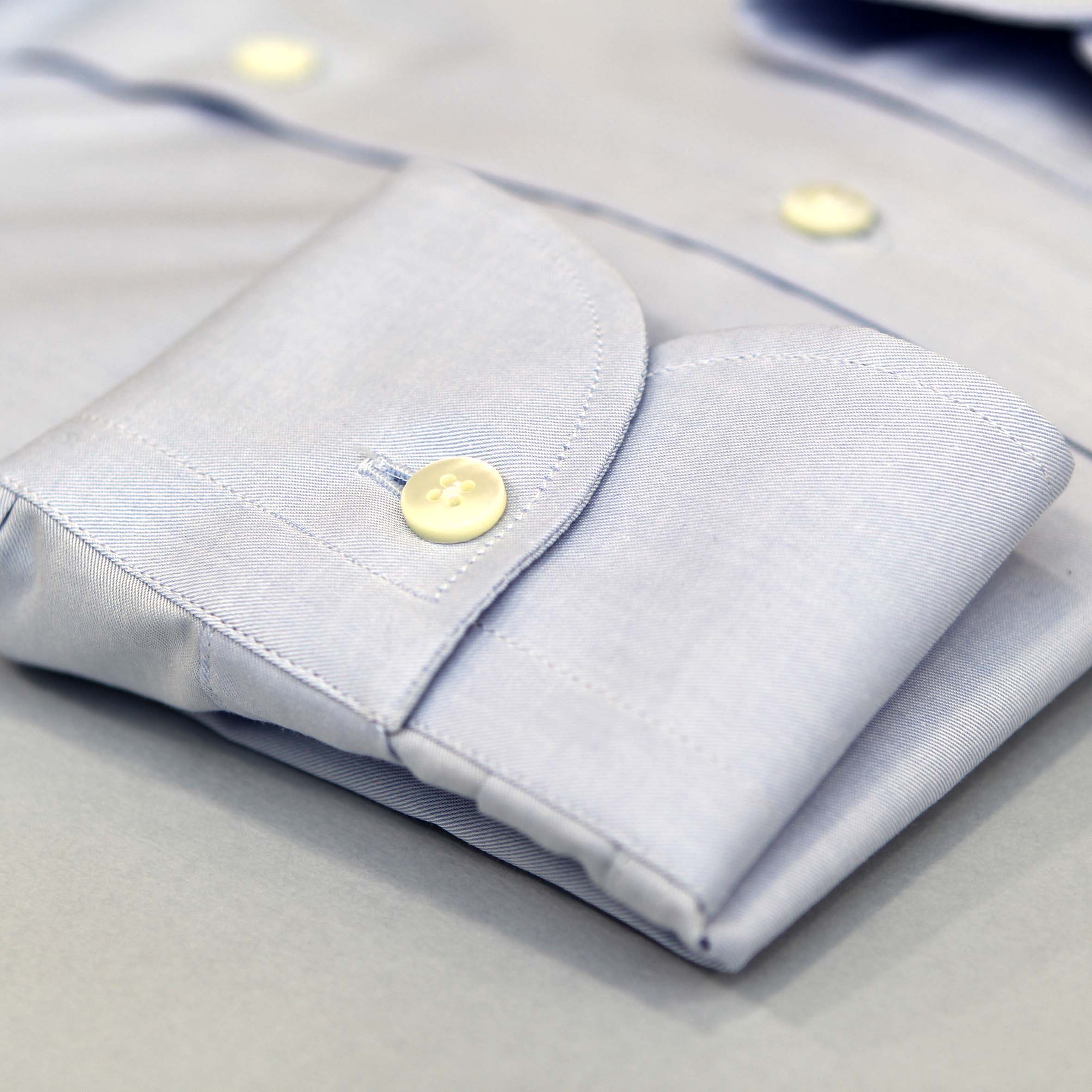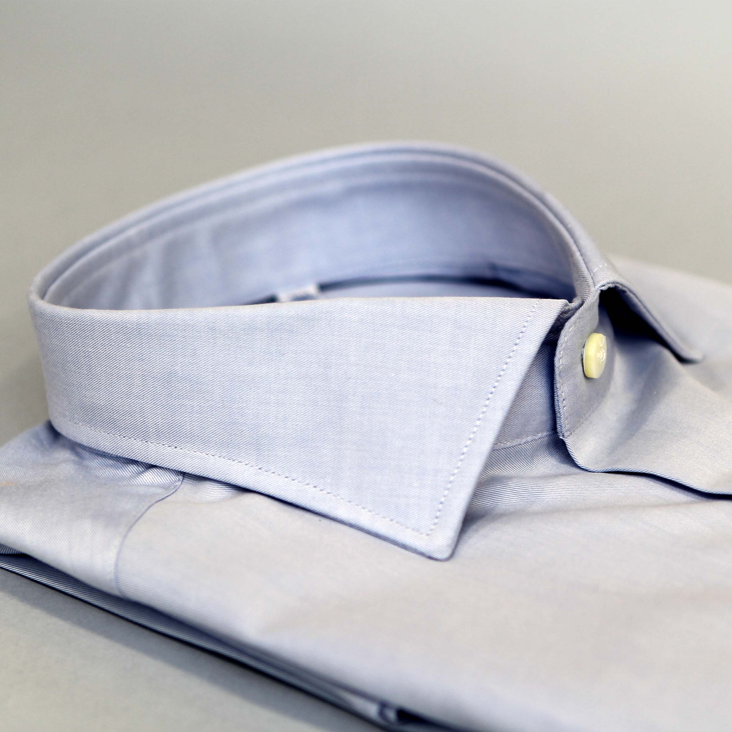 Camicia twill celeste,100% cotone, vestibilità custom, collo francese.