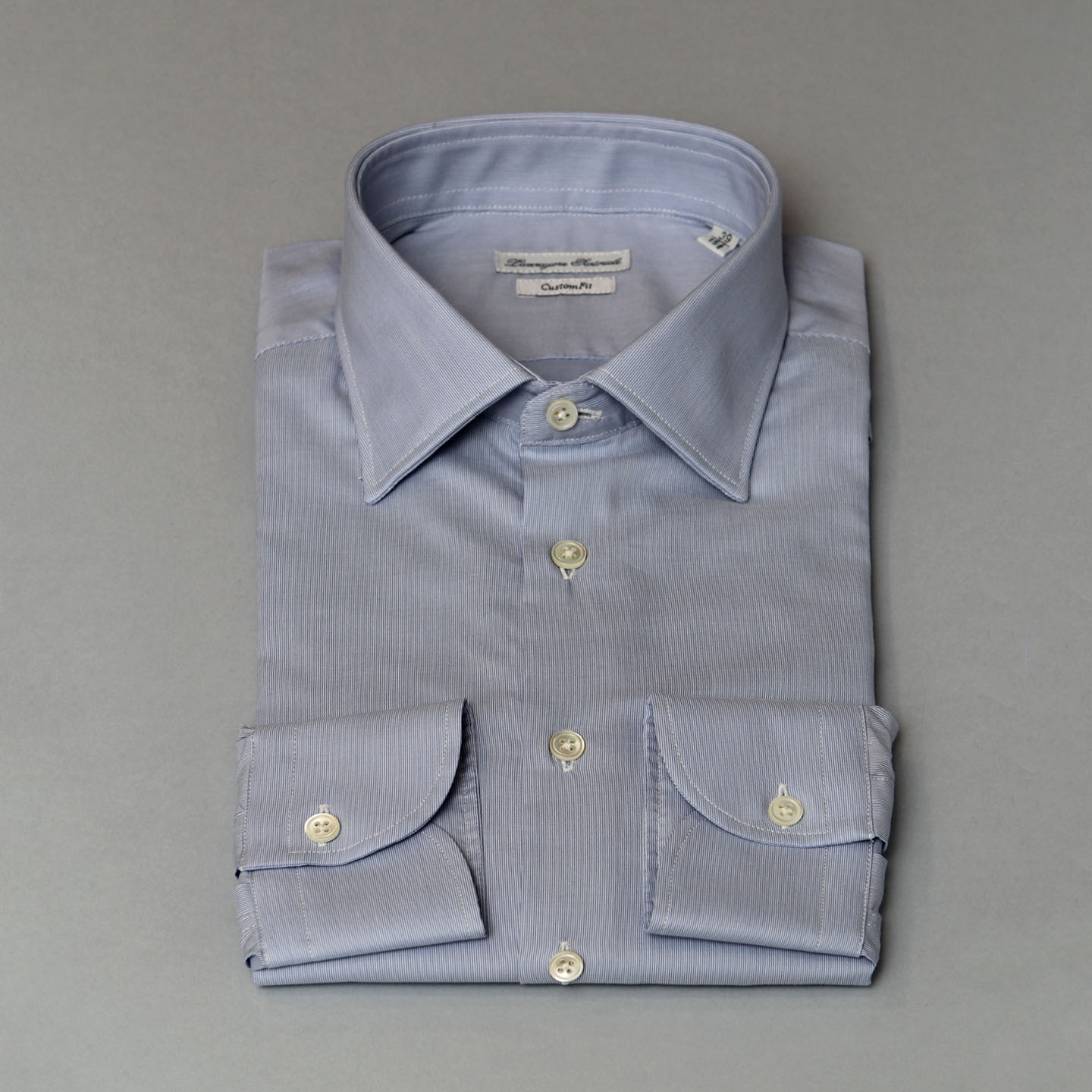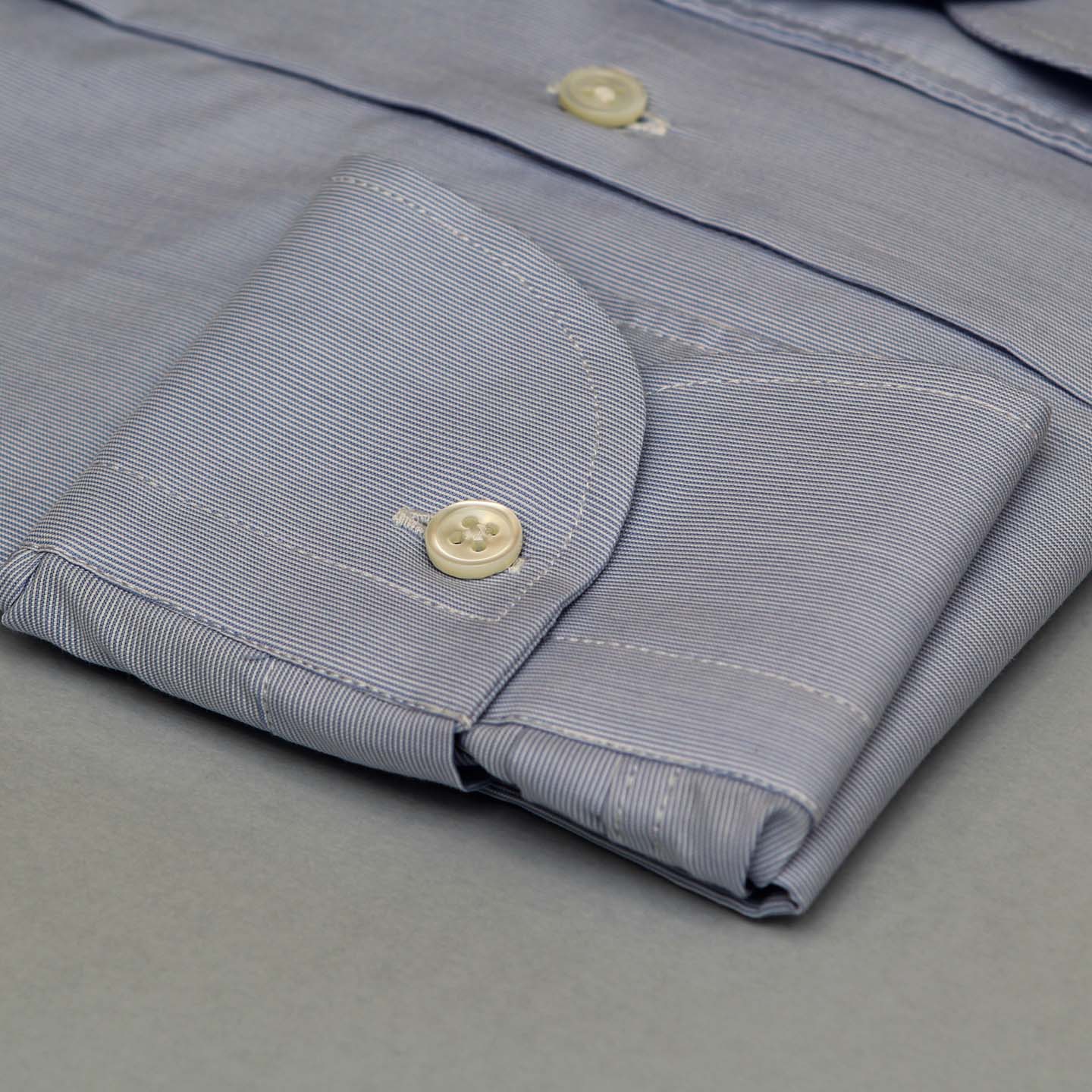 Camicia millerighe celeste, 100% cotone, vestibilità custom, collo francese.
