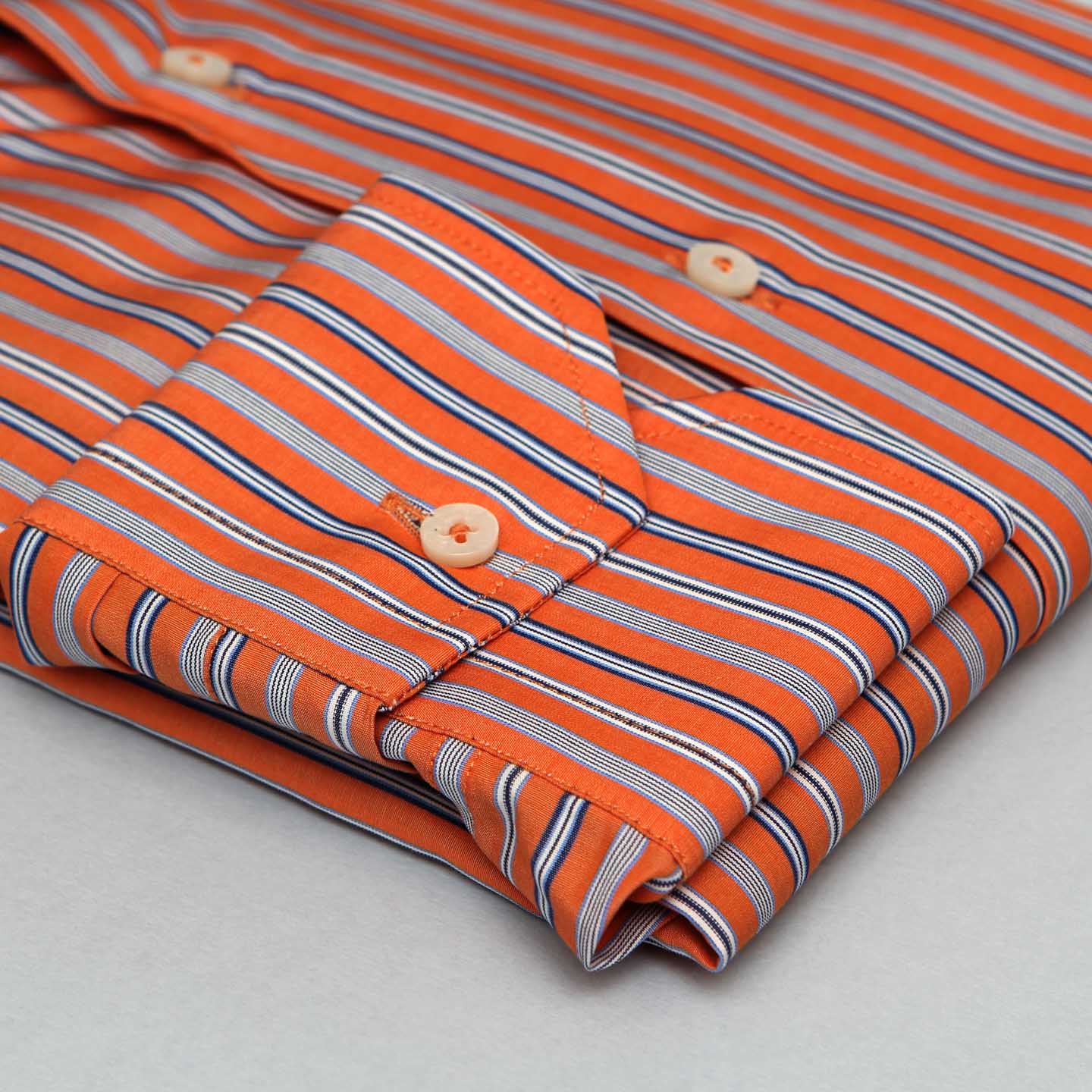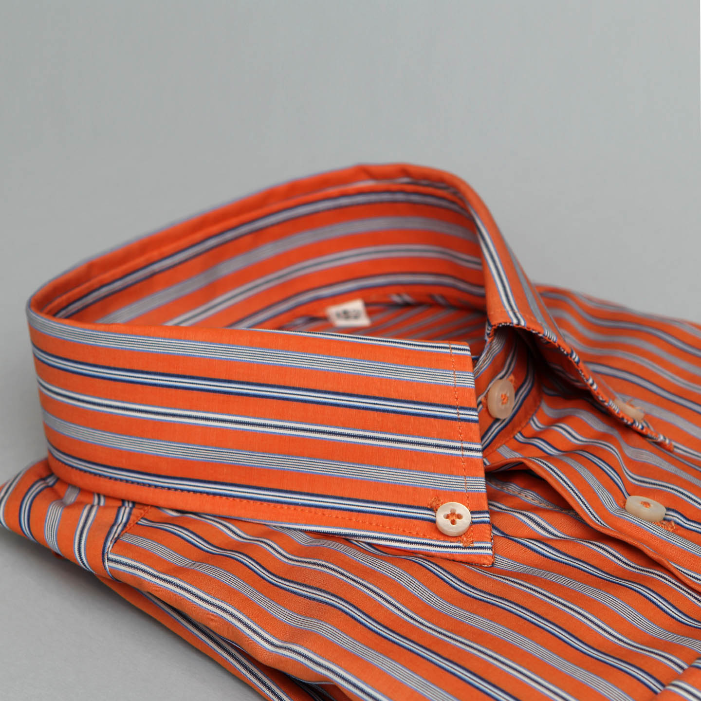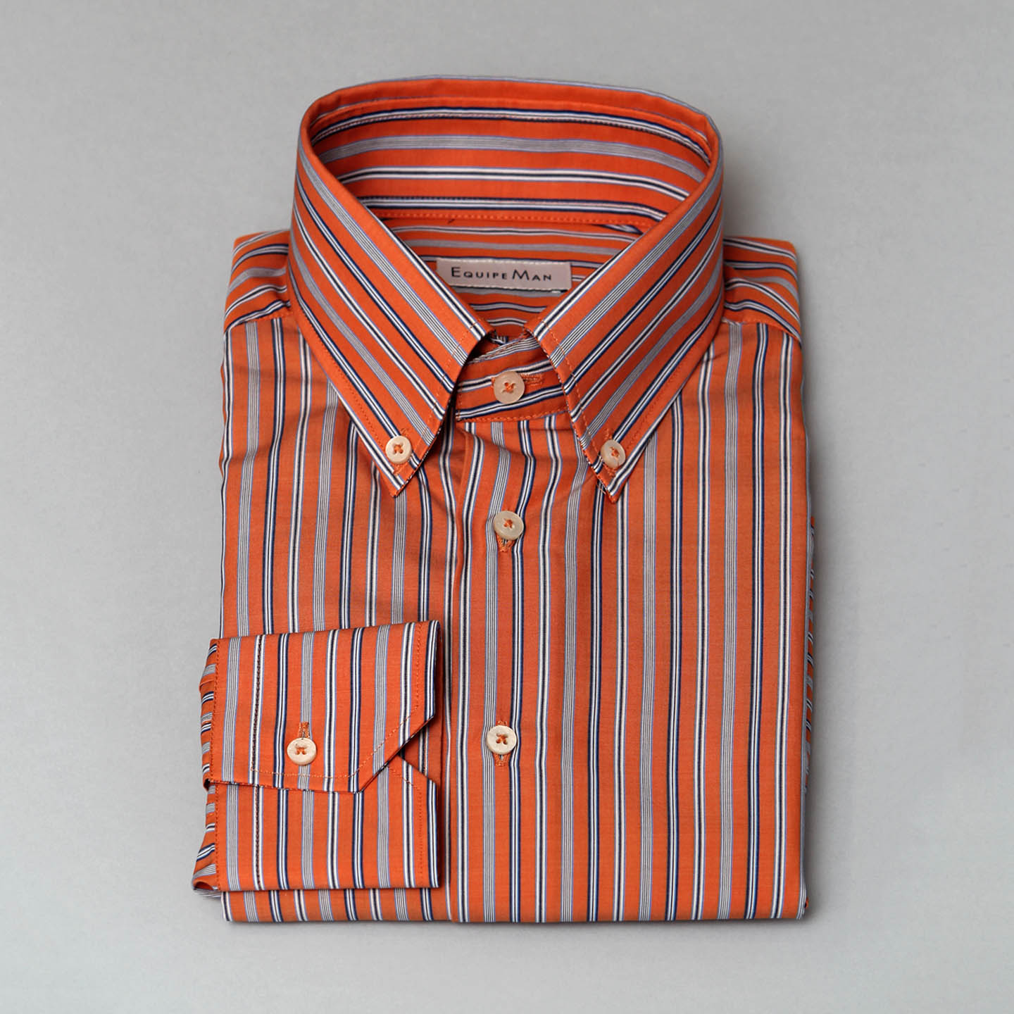 Camicia righe, 100% cotone, vestibilità comoda con riprese, collo button down.