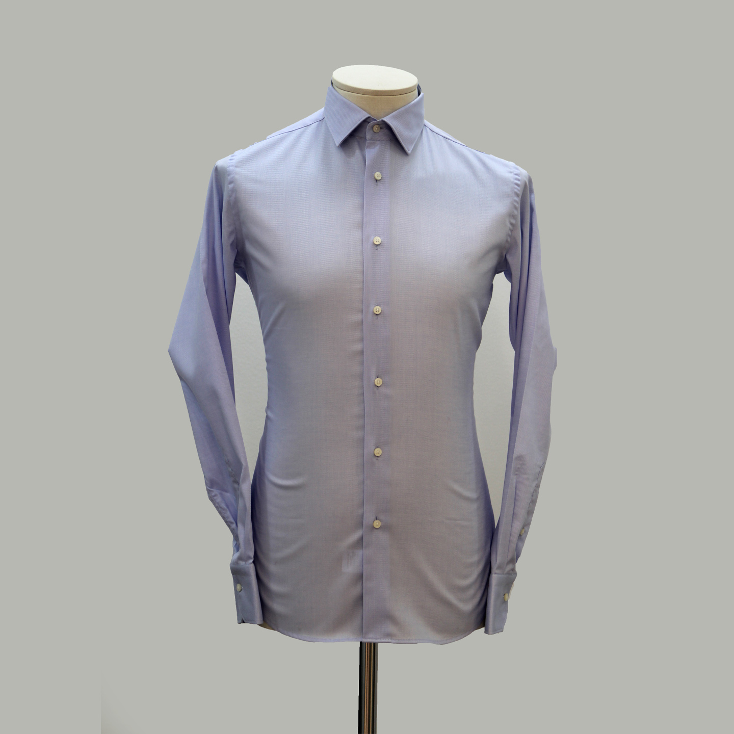 Camicia celeste, 100% cotone, vestibilità slim, collo classico.