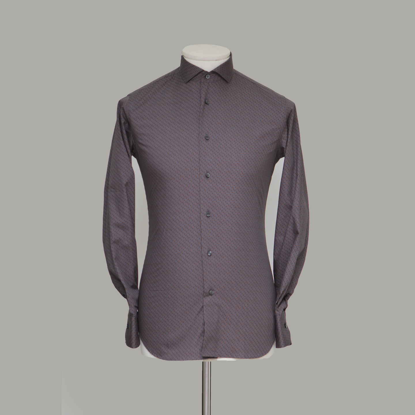 Camicia fantasia, 100% cotone, vestibilità slim, collo francese.