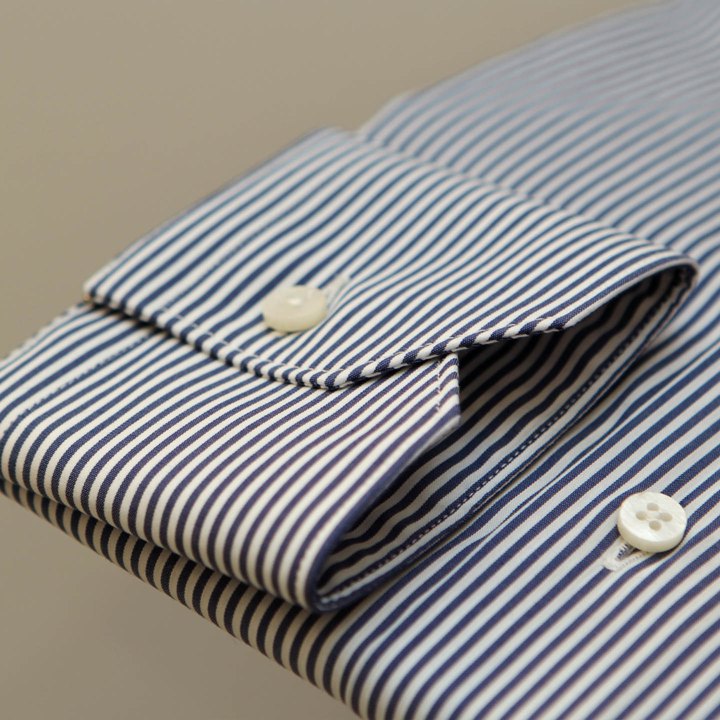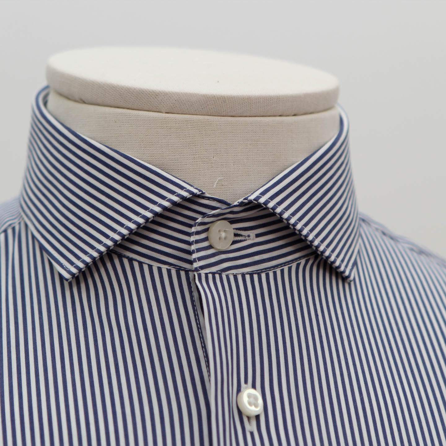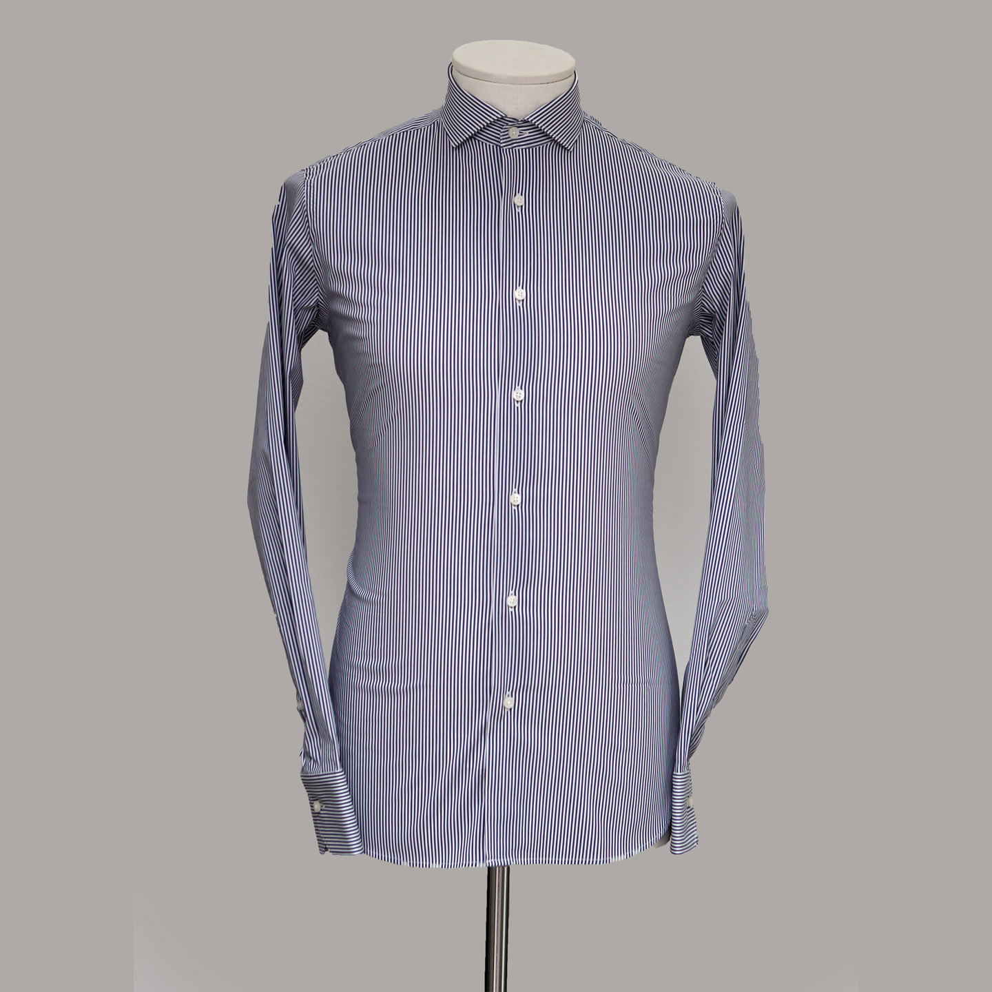 Camicia bacchettato blu, cotone elasticizzato, vestibilità slim, collo francese.