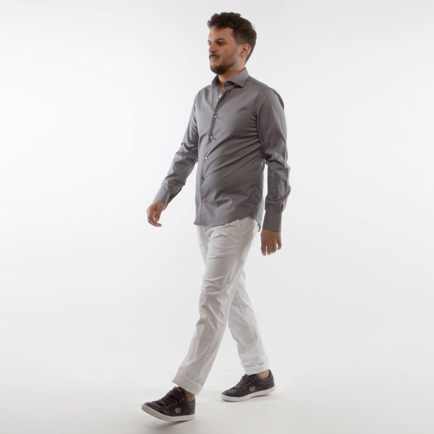 CAMICIA GRIGIO,COTONE ELASTICIZZATO,SLIM