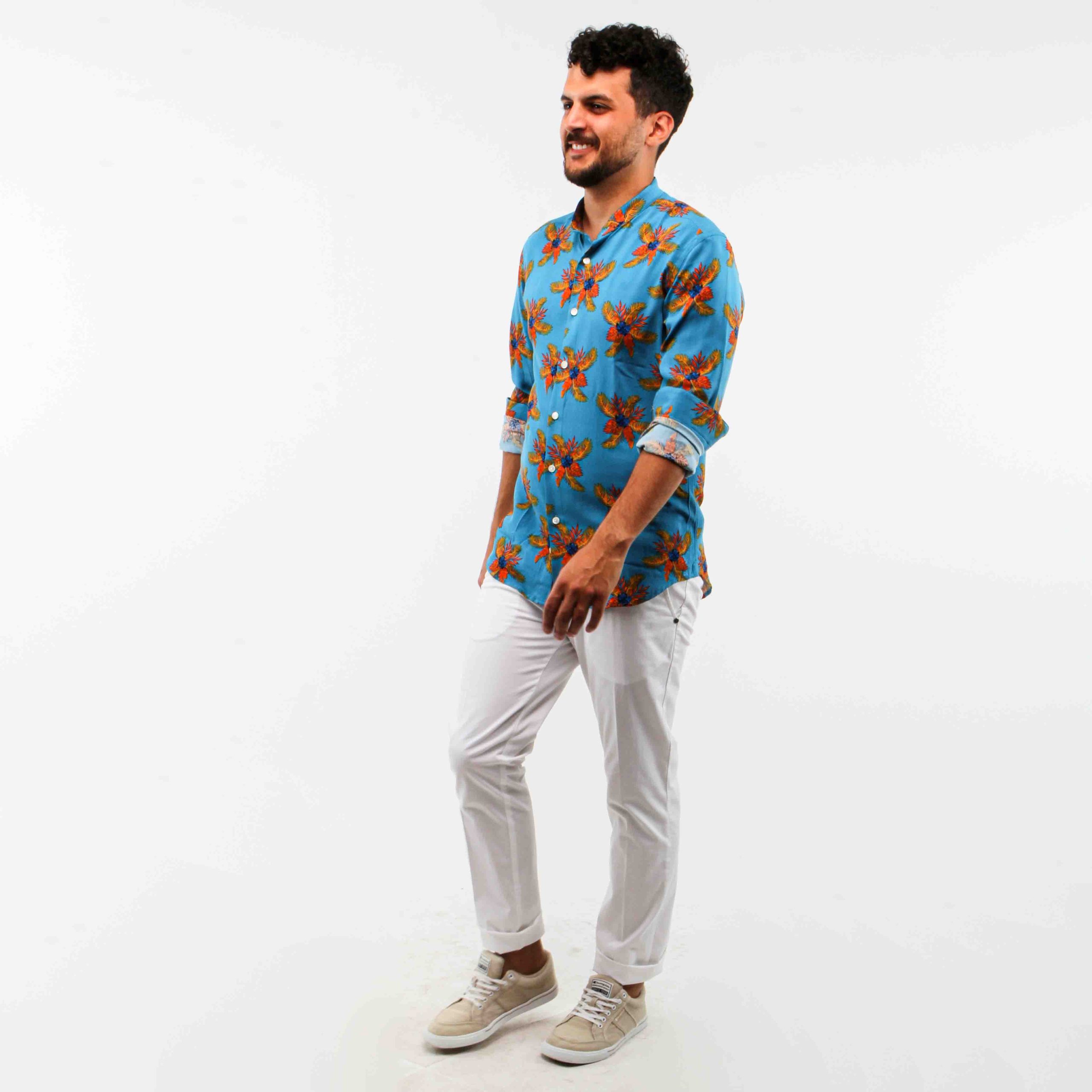 CAMICIA COREANA FANTASIA,100% VISCOSA,SLIM
