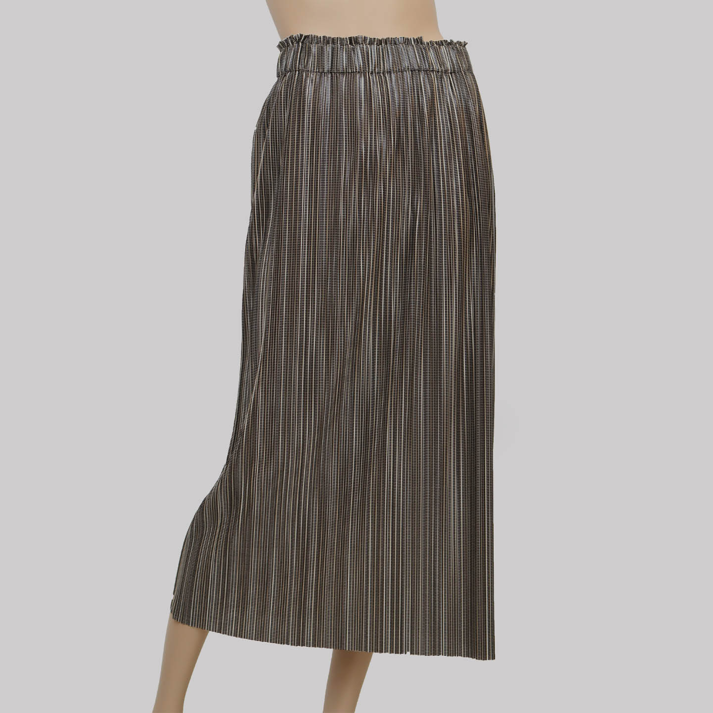 Gonna lunga in micro plissè spalmato effetto pelle; linea svasata; motivo di elastico in vita.