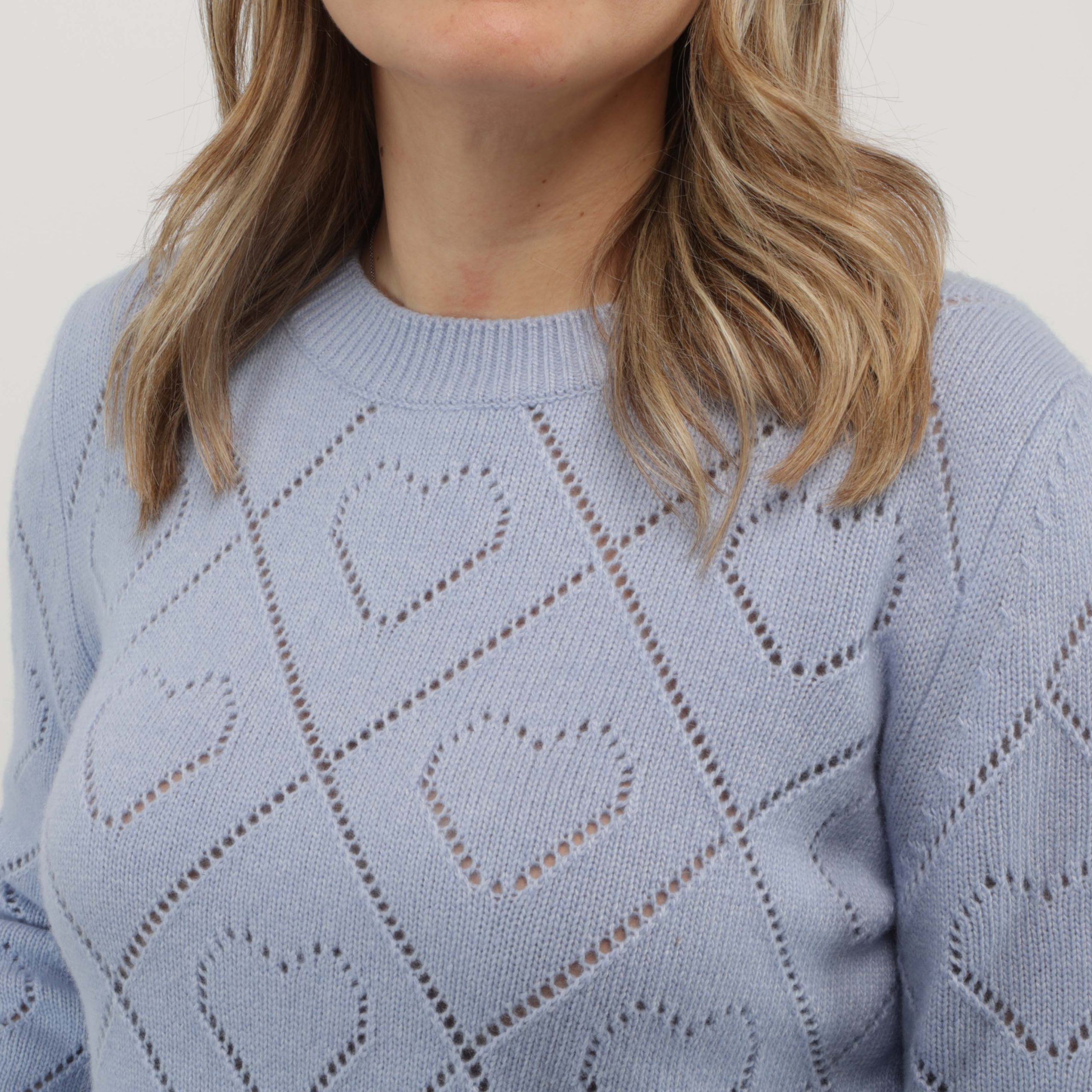 MAGLIA MISTO CASHMIRE CELESTE DISEGNO CUORI,,