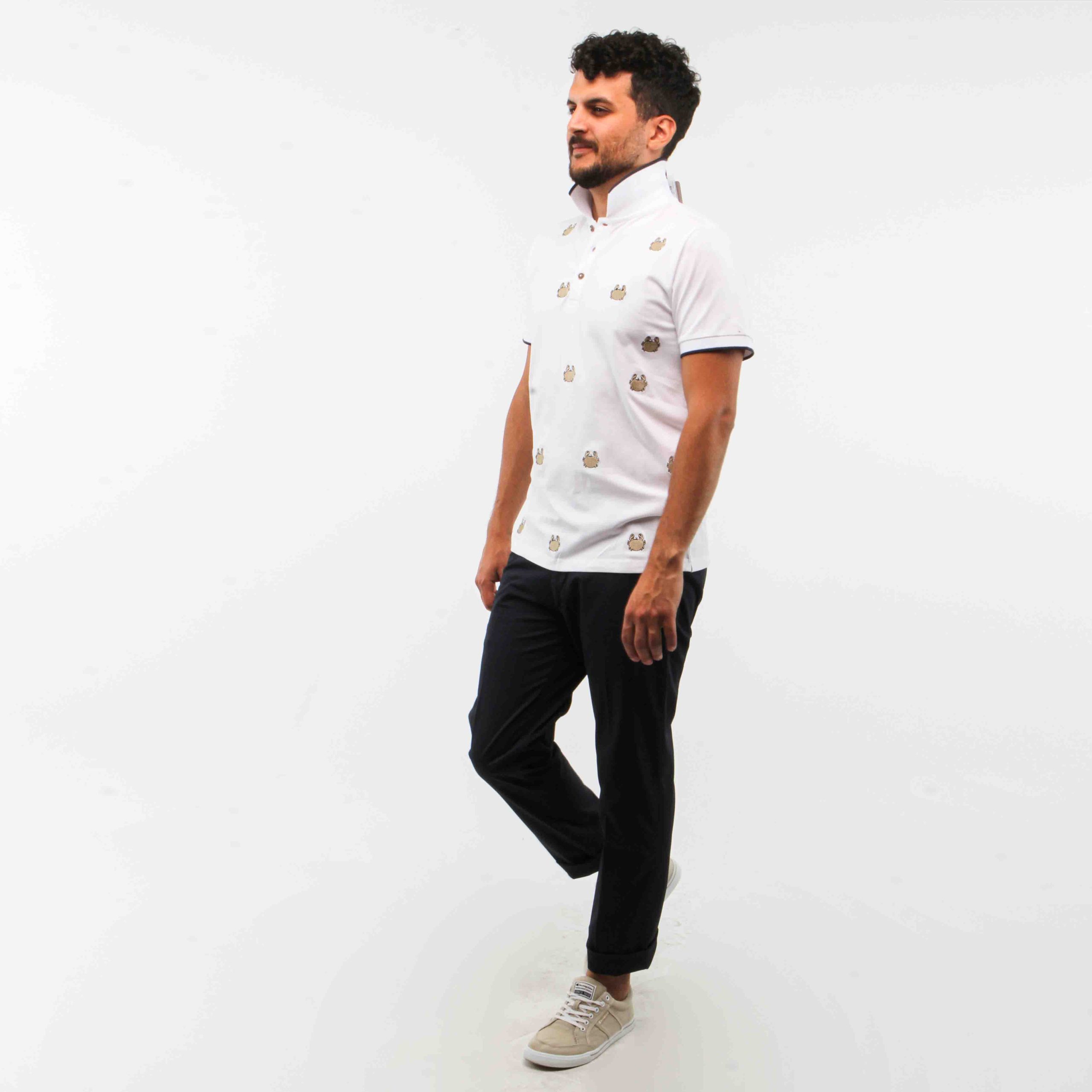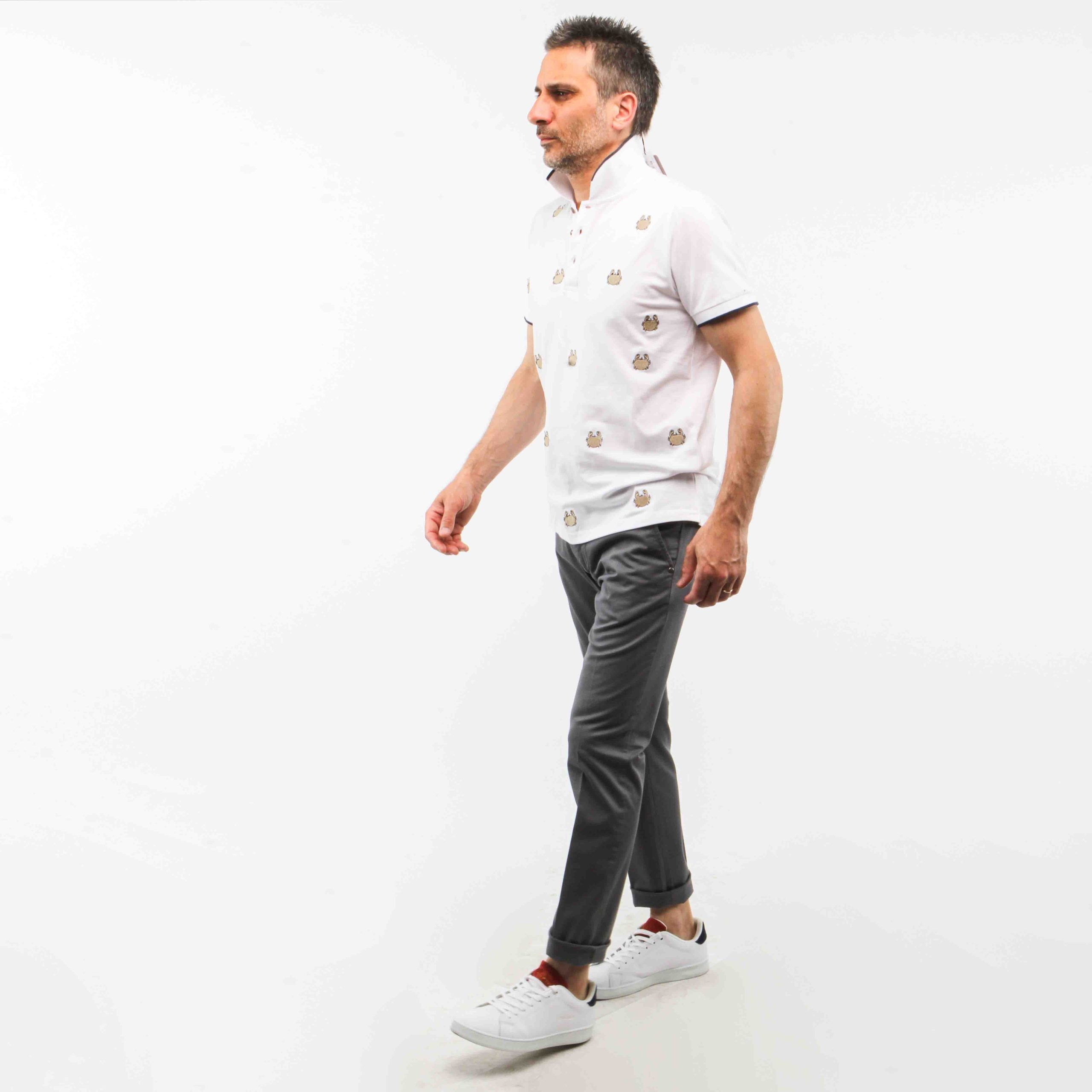 POLO DISEGNO GRANCHIO BIANCO,,